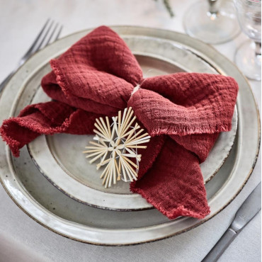 Nádherný bavlnený obrúsok v krásnej červenej farbe so strapčekmi po okrajoch.