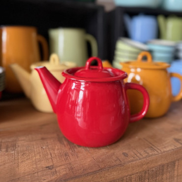 Nádherný smaltovaný čajníček s objemom 1000 ml v krásnej červenej farbe.