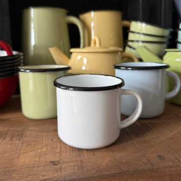 Nádherný smaltovaný hrnček s objemom 300 ml v bielej farbe.