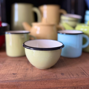 Krásna smaltovaná miska ideálna na rajčinky, oriešky či keksíky s objemom 350 ml v krásnej svetlozelenej farbe.