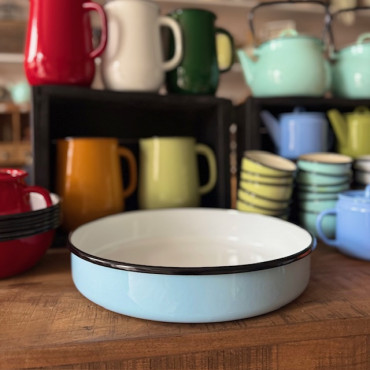 Praktická a krásny smaltovaný plech alebo podnos v svetlomodrej farbe.