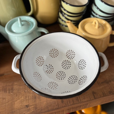 Krásny a praktický smaltovaný cedník vo vidieckom štýle.