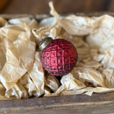 Nádherná sklenená ozdôbka v červenej farbe vo vintage štýle.