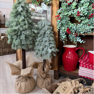 Nádherný umelý stromček s drevenou nožičkou na efektnom pníku.