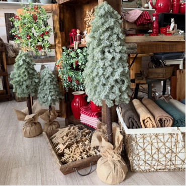 Nádherný umelý stromček s drevenou nožičkou na efektnom pníku.