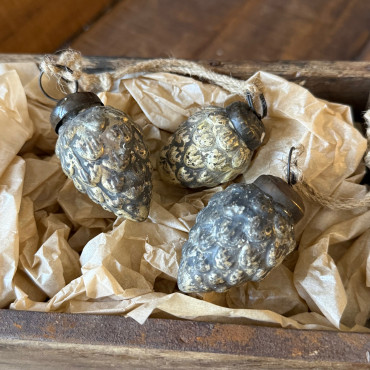 Nádherná sklenená ozdôbka v sivohnedej farbe vo vintage štýle.