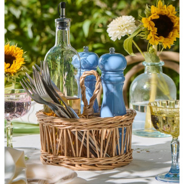 Prútený košík na príbor so štyrmi priehradkami. Krásny doplnok do kuchyne či praktický spoločník na záhradnú párty.