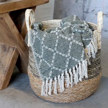 Nádherný prehoz vyrobený z bavlny v kombinácii olivovo zelenej a krémovej - prírodnej farby.