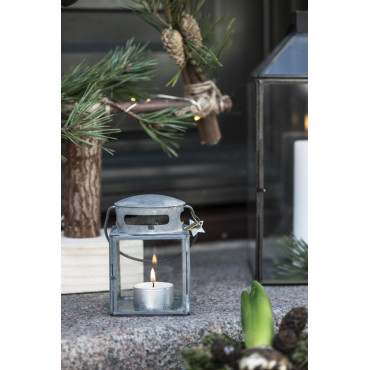 Malý rozkošný kovový lampášik vo farbe zinku.