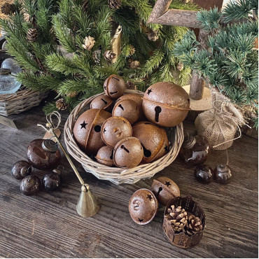 Prekrásna kovová rolnička vo vintage dizajne v hrdzavej farbe. V balení je šesť kusov.