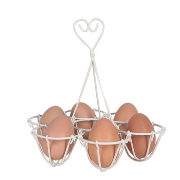 Krásny kovový stojanček na 6 vajíčok so srdiečkom v bielej farbe.