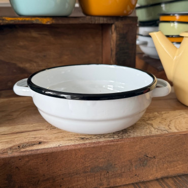 Krásna a praktická smaltovaná miska s uškami.